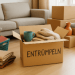 Beim Packen gilt: zuerst die selten genutzten Dinge, zuletzt die Alltagsgegenstände. Kartons sollten klar beschriftet werden – idealerweise mit Raum und Inhalt. So kannst du sie gezielt abstellen, ohne alles durchsuchen zu müssen.